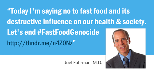 Please join me on Tuesday, October 17, 2017, to take a stand against fast food and raise awareness of a nutrient-dense diet as a healthful alternative. Let’s expand the conversation about food away from ‘fast’ and toward nutritional excellence. Stand with me on Facebook, Twitter and/or Tumblr by registering here to post a one-time message to your social media account.