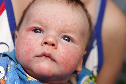 Eczema, also known as atopic dermatitis, is a chronic skin disorder that involves itchy skin which becomes red, dry, scaly, and thick. Eczema is more common in children but can also occur at any age.