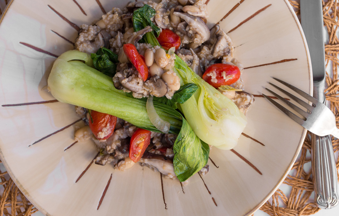 Baby Bok Choy with Adzuki Beans and Bulgur