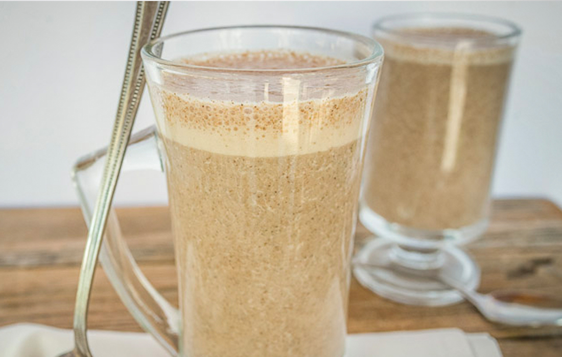 Warm up with a chocolaty cup of this comforting beverage. Chia seeds are high in omega-3 fats and fiber and are also a natural thickening agent.