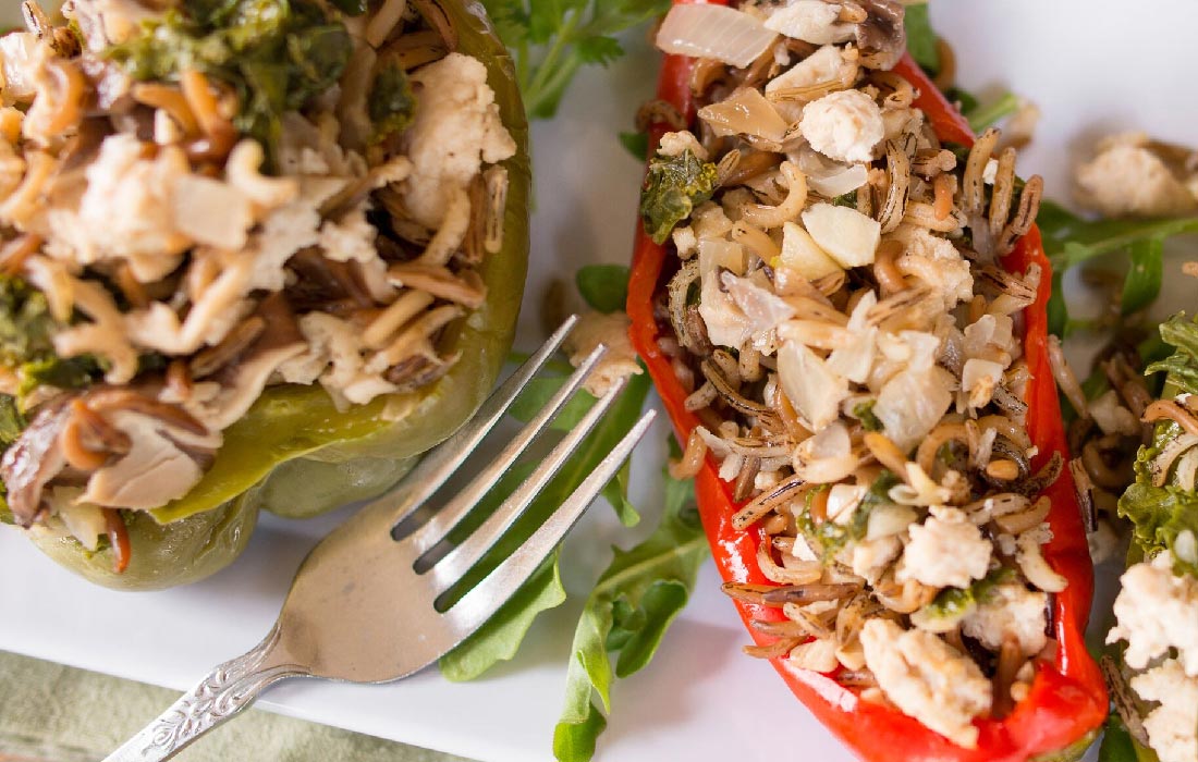 Stuffed Peppers with Mushrooms, Greens and Ground Turkey
