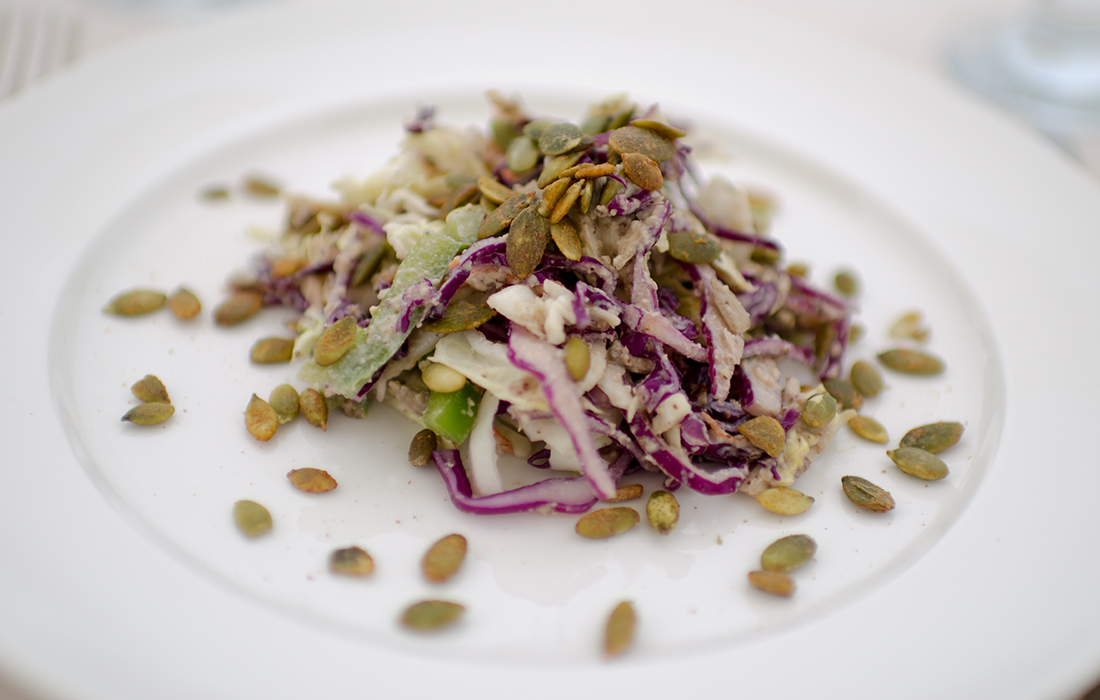 This salad delivers your daily dose of cruciferous with three different kinds of cabbage. And for good measure, it contains three different kinds of seeds!
