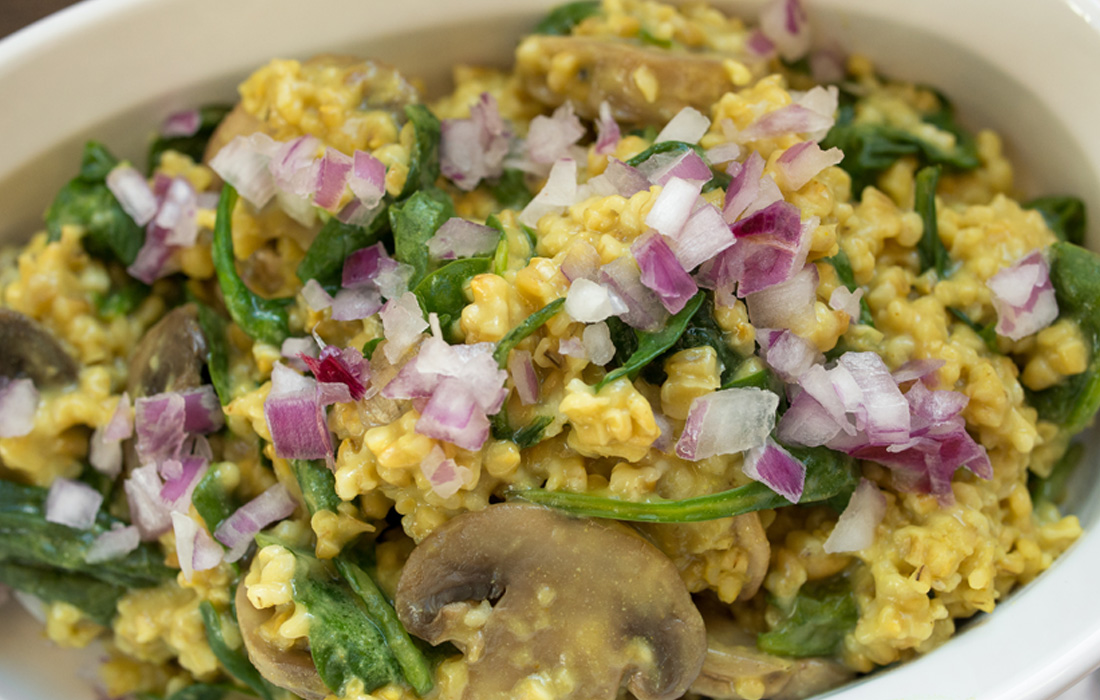 Shake up your morning breakfast routine with these savory scrambled oats.