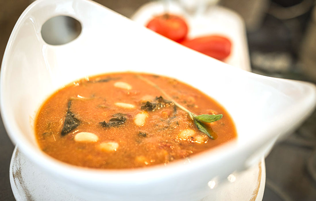 This delicious and nutritious soup is packed with tomatoes, white beans and lots of greens. Garlic, onions and basil add just the right flavor.