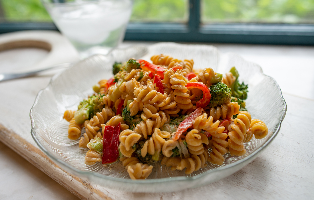 8 ounces bean pasta (see note), cooked according to package directions, rinsed under cold water and drained