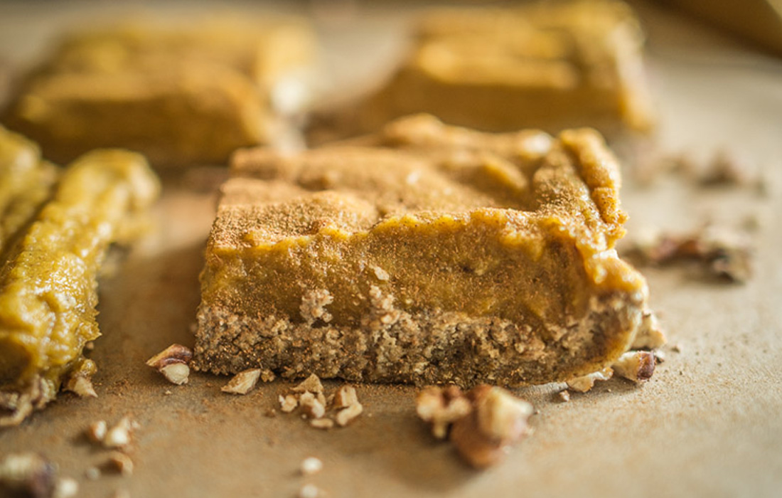 These yummy squares combine a cinnamon, ginger and clove-spiced pumpkin filling with a pecan and pumpkin seed crust. Perfect for a Friendsgiving celebration!
