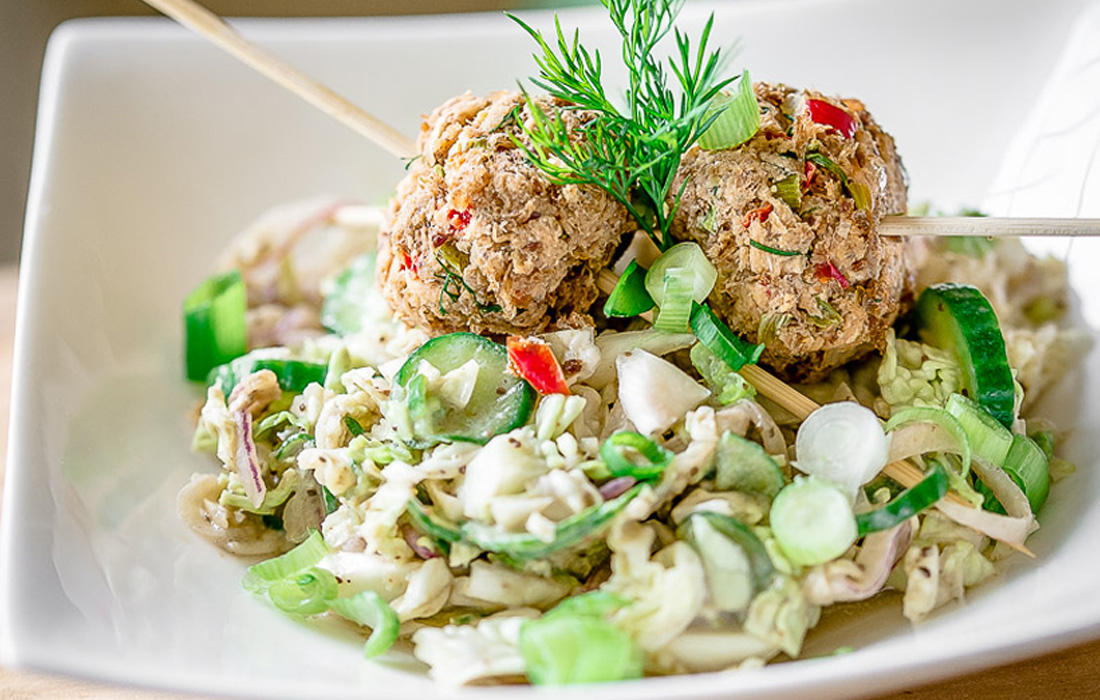 Salmon Balls with Napa Cabbage Slaw