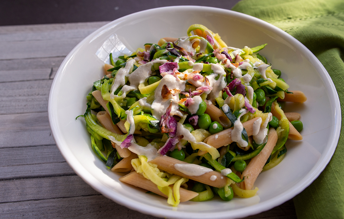 Note: To make your own cashew cream sauce, place 1/2 cup raw cashews, 2 tablespoons hemp seeds, 1/2 cup unsweetened soy, hemp or almond milk, 1/4 cup dehydrated onion flakes and 1 tablespoon