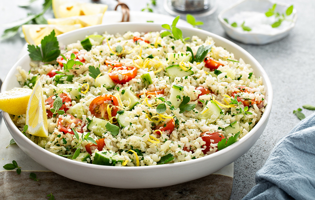 Fresh parsley and mint give this salad its great flavor. And frozen cauliflower rice makes it easy to toss together!