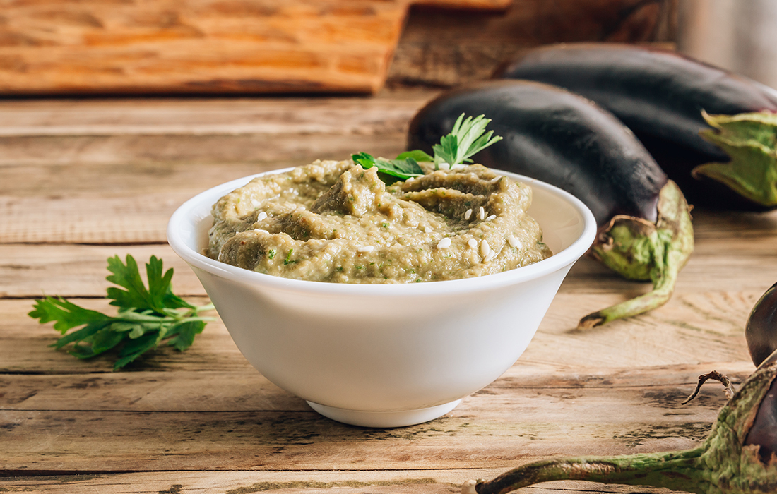 Baba Ganoush comes to us from the Eastern Mediterranean region. Similar to hummus, it's made with eggplant instead of chickpeas. Serve with an assortment of crisp raw veggies!