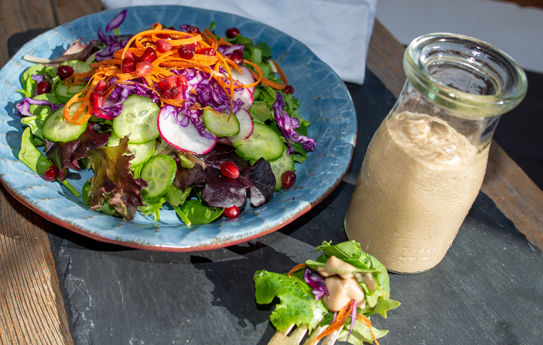Keep it interesting! Dress up your salad with this tasty blend of apples, walnuts, and flavored vinegar.
