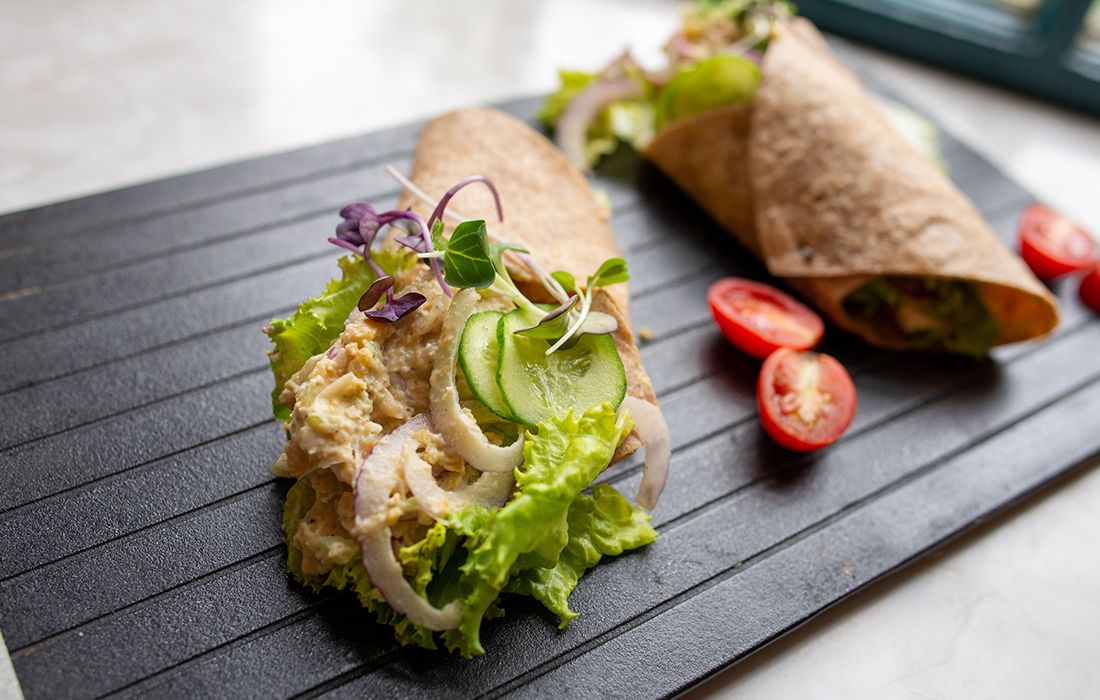 Construct a great sandwich or wrap using chickpeas and a seed-based ranch dressing.