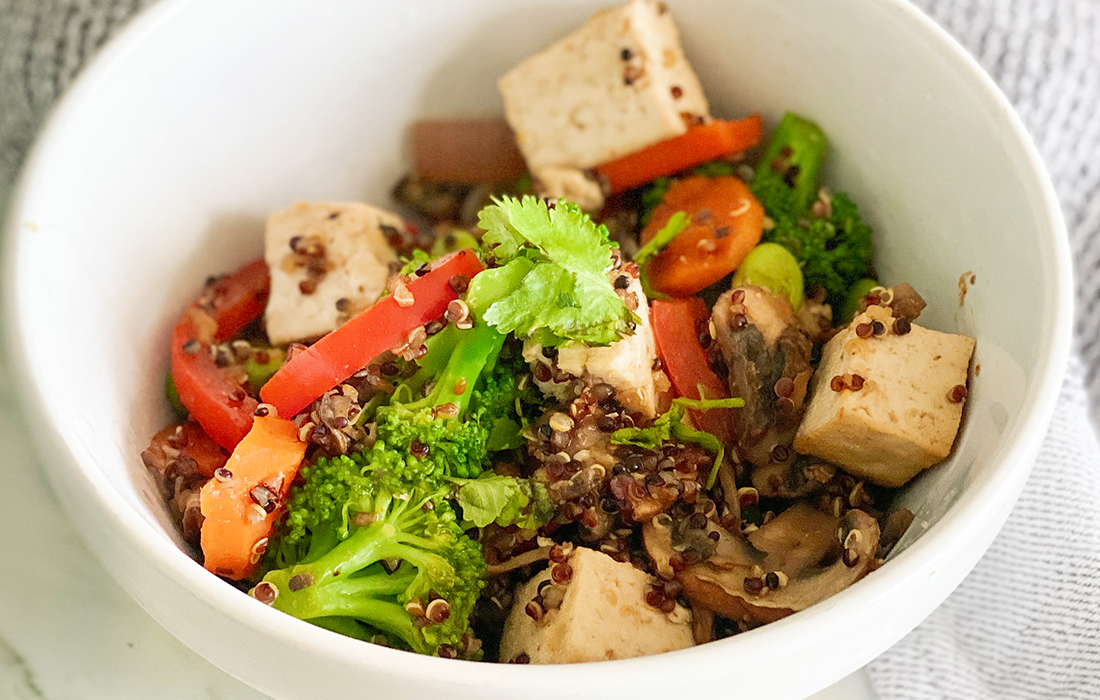 This dish is quick, easy and so delish! Quinoa replaces rice and contributes its own unique texture and flavor.