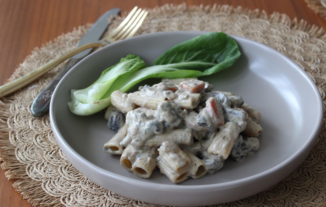 Serve and Garnish: Serve the creamy sauce over bean pasta. Garnish with additional fresh dill, lemon zest, and toasted