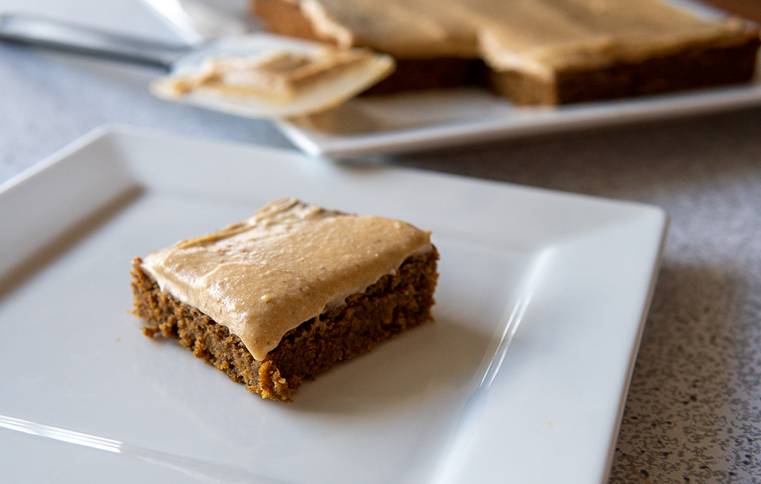 In need of a treat? Maybe a pumpkin and spice cake with coconut cream frosting?