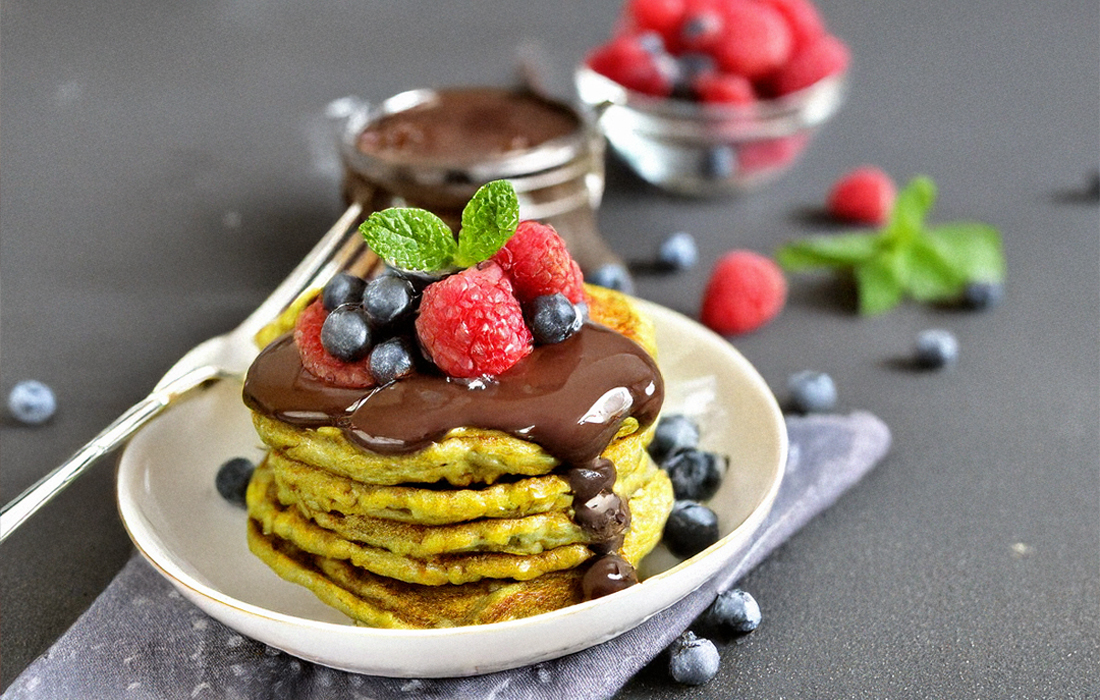 Lentil Pancakes with Chocolate Sauce and Berries