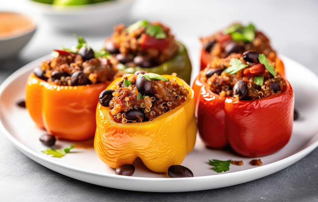 nutritional yeast. Spoon mixture into peppers and place on a baking dish . Bake at 350 degrees F for 20 minutes or until heated through.