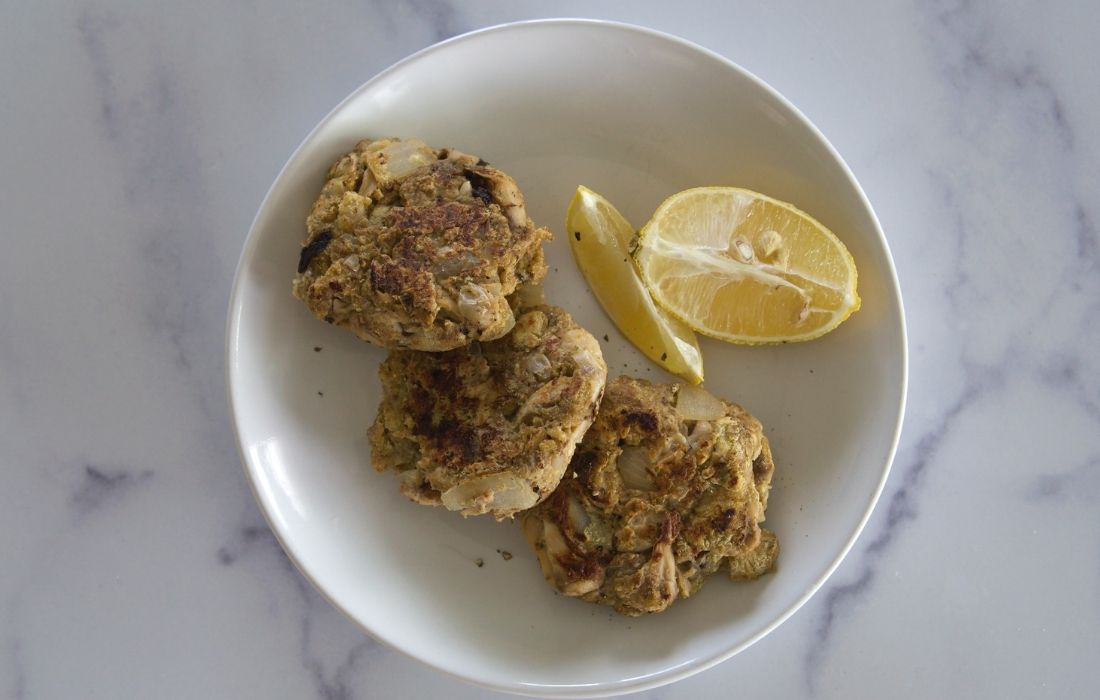 Form Patties: Divide the mixture into 4–5 equal portions and shape into flat patties about 1/2 inch thick.