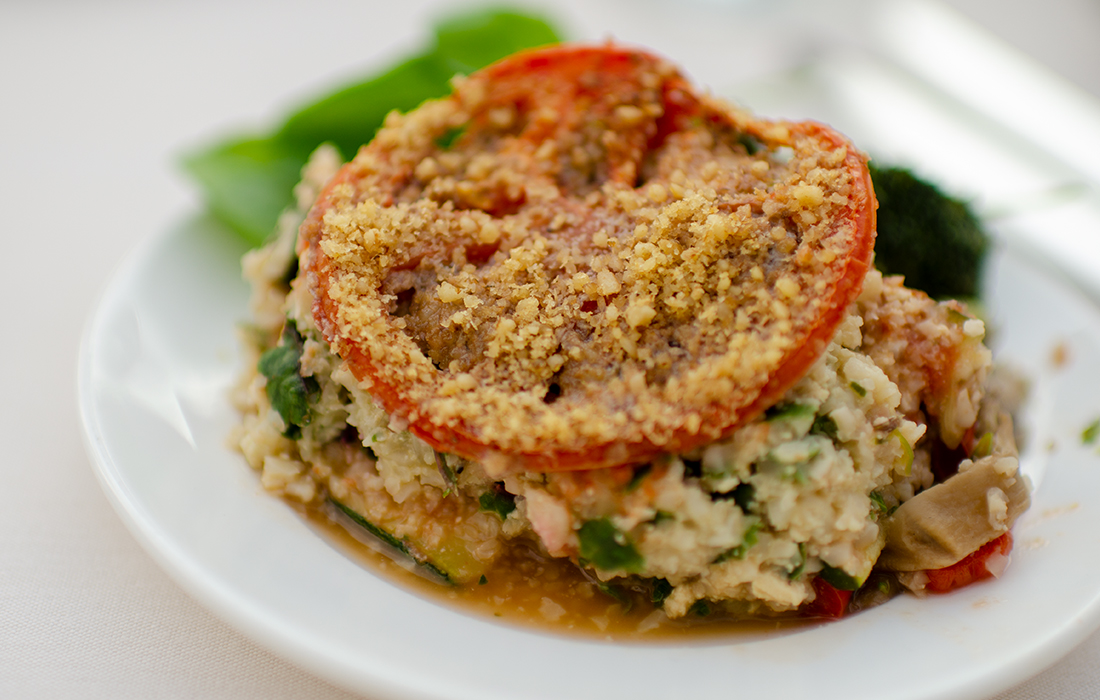 Slices of eggplant, zucchini and yellow squash replace lasagna noodles and increase the nutrient density!