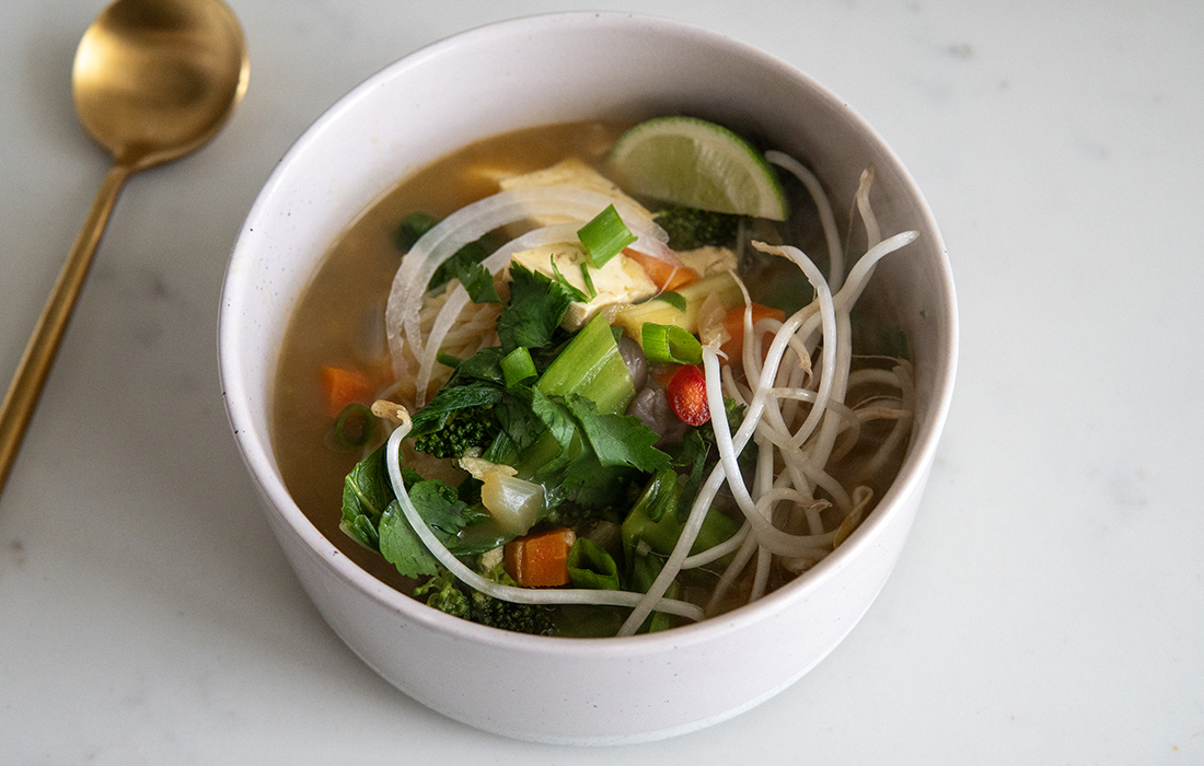 Pho is a popular Vietnamese soup. Start with a flavorful, slow-simmered broth and add noodles, mushrooms and your choice of toppings.