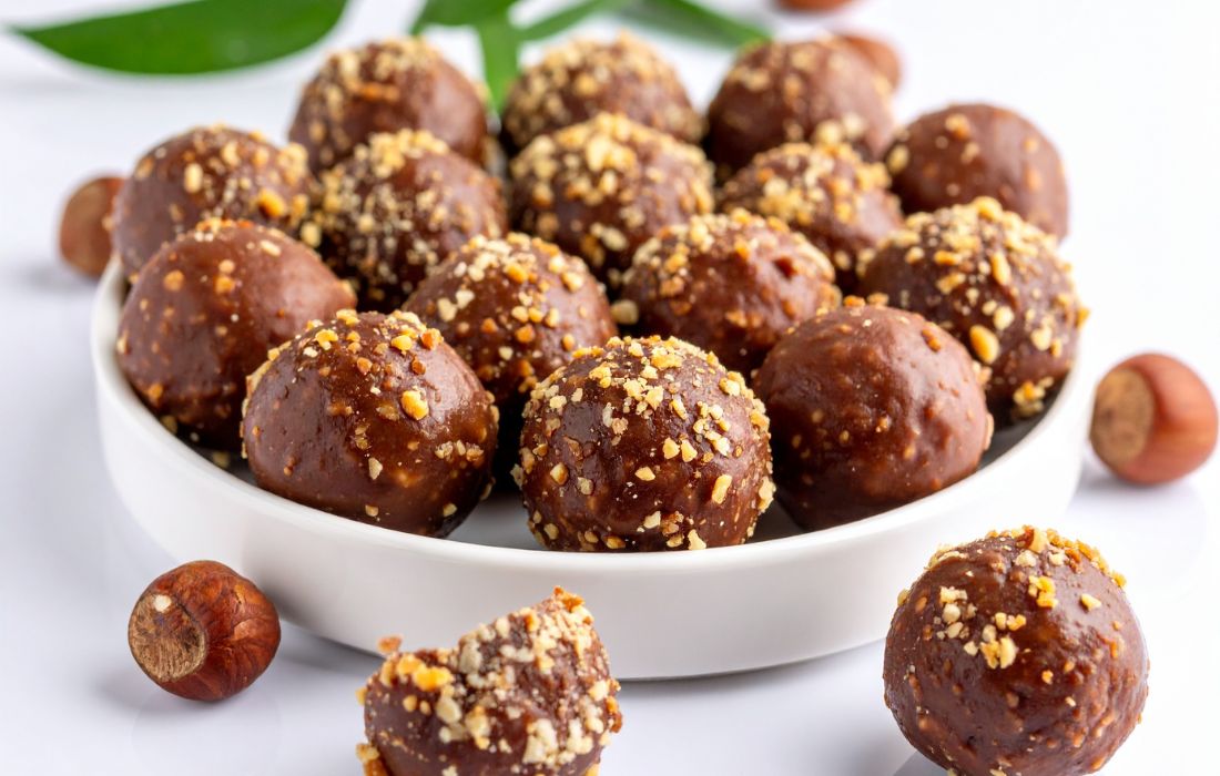 Rich, fudgy, and naturally sweetened—these cocoa hazelnut truffles are made with almonds, dates, and cocoa, then rolled in crushed hazelnuts for a crunchy finish. Perfect for a wholesome snack or treat!