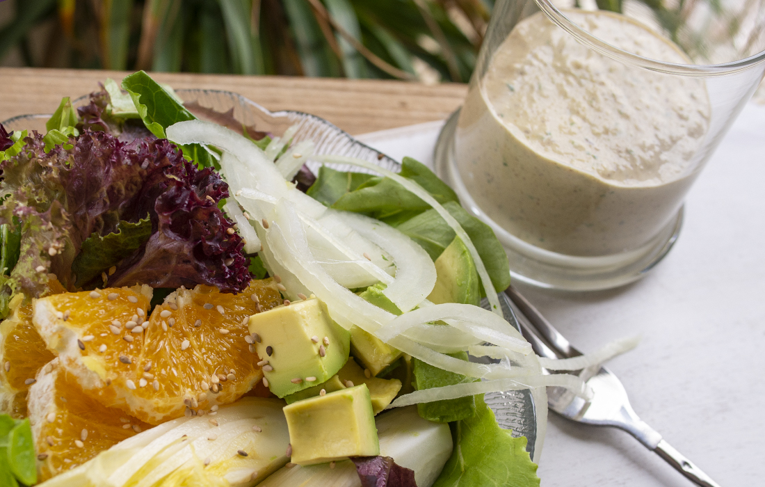 The bright flavor of oranges and the creaminess of cashews combine for a delicious dressing.