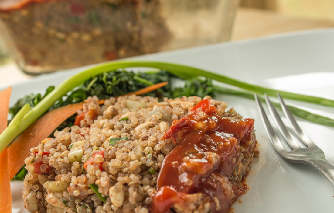 Build a cozy dinner around this flavorful non-meat loaf. It pairs well with a side of leafy greens, broccoli or brussels sprouts.