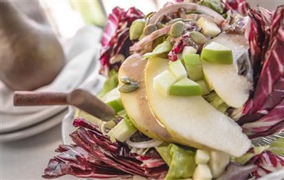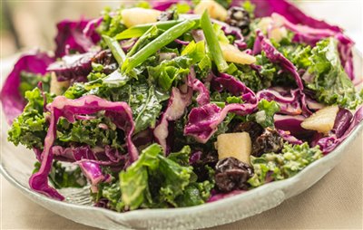 Kale and Red Cabbage Salad with Apples and Dried Cherries