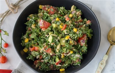 Crazy for Kale Salad with Dijon Pumpkin Seed Dressing