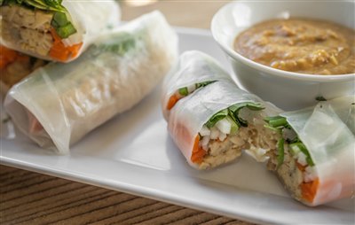 Fresh Spring Rolls with Peanut-Ginger Tempeh