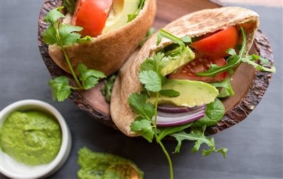 Arugula and Spinach Stuffed Pitas with Watercress Pesto