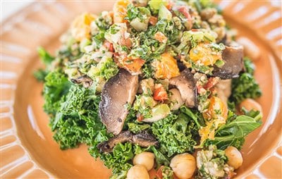 Citrusy Pico de Gallo Kale with Portobello Mushrooms