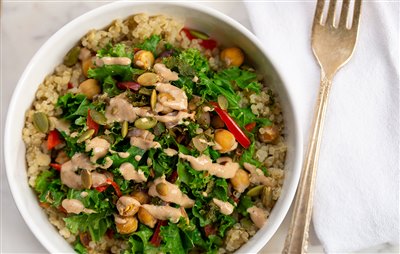 Crispy Chickpea Quinoa Bowl with Lemon Vinaigrette