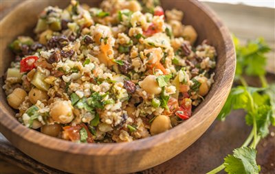 Broccoli Tabouli with Chickpeas and Currants