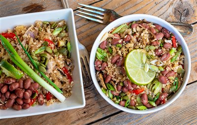 Cauliflower Rice and Beans Fajita Bowls