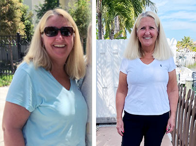 In November 2020, I experienced postmenopausal bleeding because of a benign uterine polyp. After doing a lot of research, I learned that uterine polyps were caused by excess estrogen and that excess estrogen was the result of excess body fat. One week later, I broke my right ankle and had plantar fasciitis in my left foot. When my ankle cast was removed in March 2021, I realized my physical condition was very dangerous. I was 57 years old, could barely walk, was pre-diabetic, had a BMI of 37.4% and a waist size of 42” and my estrogen level was six times higher than it should have been. It was a real wake-up call.